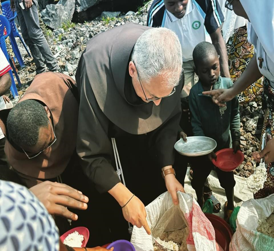 Le Samedi 03 février était marqué par la visite dans l’un de sept camps des Réfugiés, à nos frères et sœurs victimes de la situation précaire de notre pays. C’était le moment d’une expérience indescriptible de misère où nos cœurs ont gémi. Après un tour dans le camp, le Ministre Général et son équipe composée de frères et sœurs franciscains, ont partagé au enfants la nourriture préparée (riz et haricots). Inimaginable de voir que les enfants de moins de 2 ans se battent pour la survie.
